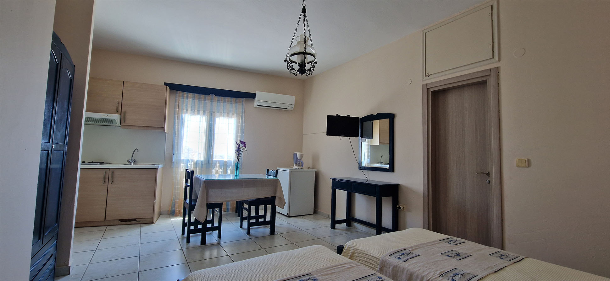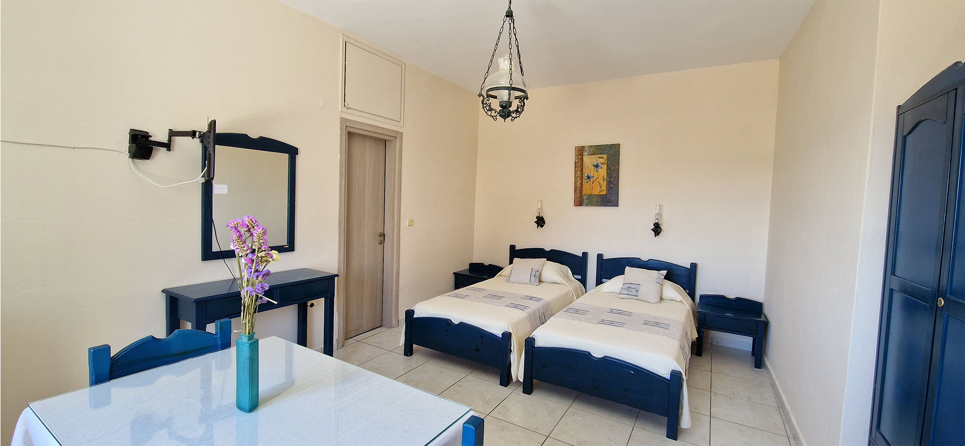 Υπέροχη διαμονή στο δίκλινο ευρύχωρο δωμάτιο που διαθέτει όλες τις σύγχρονες ανέσεις για να περάσετε ανεκτίμητο ποιοτικό χρόνο με τους αγαπημένους σας. Το άνετο ιδιωτικό μπαλκόνι με θέα τη θάλασσα θα σας προσφέρει στιγμές απόλυτης χαλάρωσης.